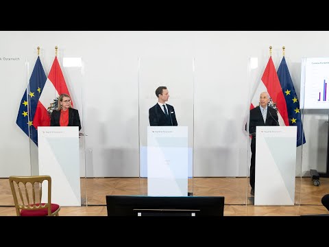 Die Pressekonferenz zum Thema "Aktuelles zu Standort und Beschäftigung" mit Finanzminister Gernot Blümel, Arbeitsminister Martin Kocher und ...